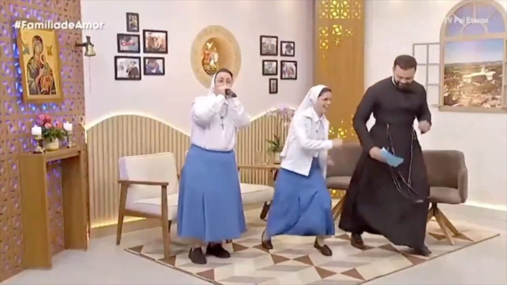 Divas brazīliešu mūķenes kļuvušas par interneta sensāciju, pateicoties spontānam bītboksa un dejas priekšnesumam katoļu televīzijas pārraidē.