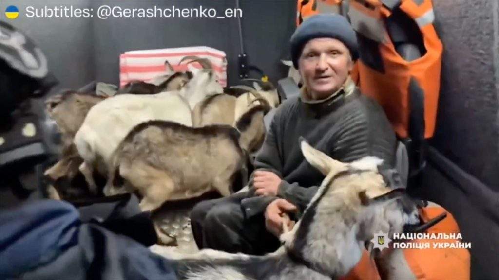 Ukrainas policijas ekipāža “Baltais eņģelis” evakuējusi 63 gadus vecu vīrieti un viņa 11 kazas no Sumu apgabala pierobežas zonas, kas regulāri cieš no Krievijas armijas apšaudēm.