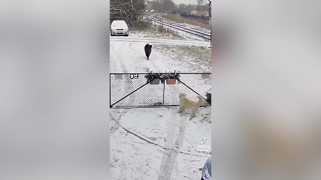 VIDEO. Suņa riešana sadusmo mežacūku – meža dzīvnieks vēsā mierā sagāž sētas vārtus 21