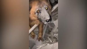 VIDEO. Suņa sirds neizturēja… Miris Krims, kurš sēroja par savu saimnieku nāvi uz sagrautās ģimenes mājas drupām 30