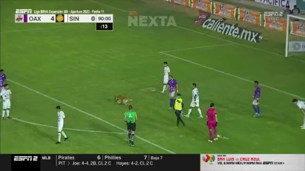 Meksikā futbola mača laikā starp “Alebrijes de Oaxaca” un “Dorados de Sinaloa” komandām skatītājus un arī pašus spēlētājus pārsteidza četrkājaina superavaigzne – suns, kas futbolistiem nočiepa bumbu un vēl vairākas minūtes laukuma darbiniekus dzenāja pa visu laukumu.