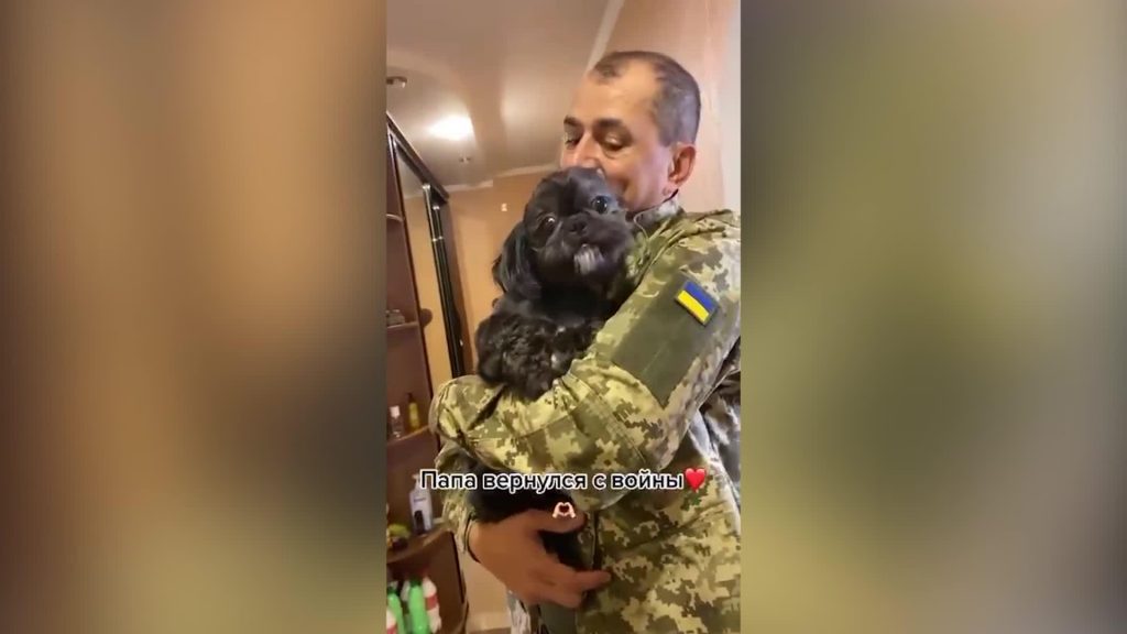 VIDEO. Suns raud no laimes, viņa saimnieks atgriezies mājās no frontes līnijas Ukrainā 0