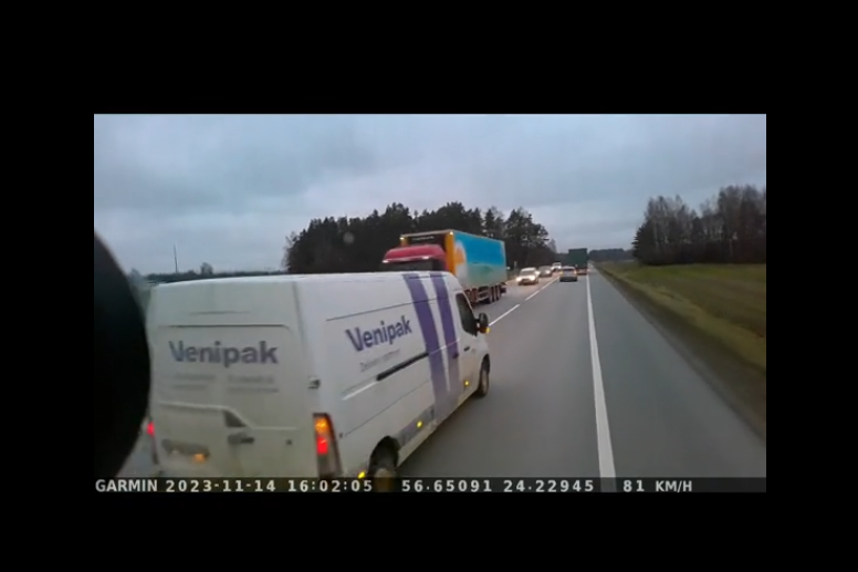 Tērzēšanas platformā “X” ievietots video, kas sasniedzis jau vairāk nekā 206 tūkstošus skatījumu un ir pierādījums kāda autovadītāja pārgalvībai. Video redzams, kā “Venipak” auto veic pārgalvīgu apdzīšanas manevru, par mata tiesu izvairoties no sadursmes.