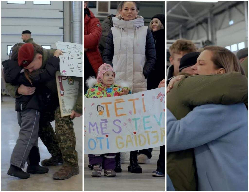 VIDEO. “Tēti mēs tevi gaidījām!” Bērni un mīļotās sirsnīgi sagaida mājās Latvijas armijas karavīrus 0