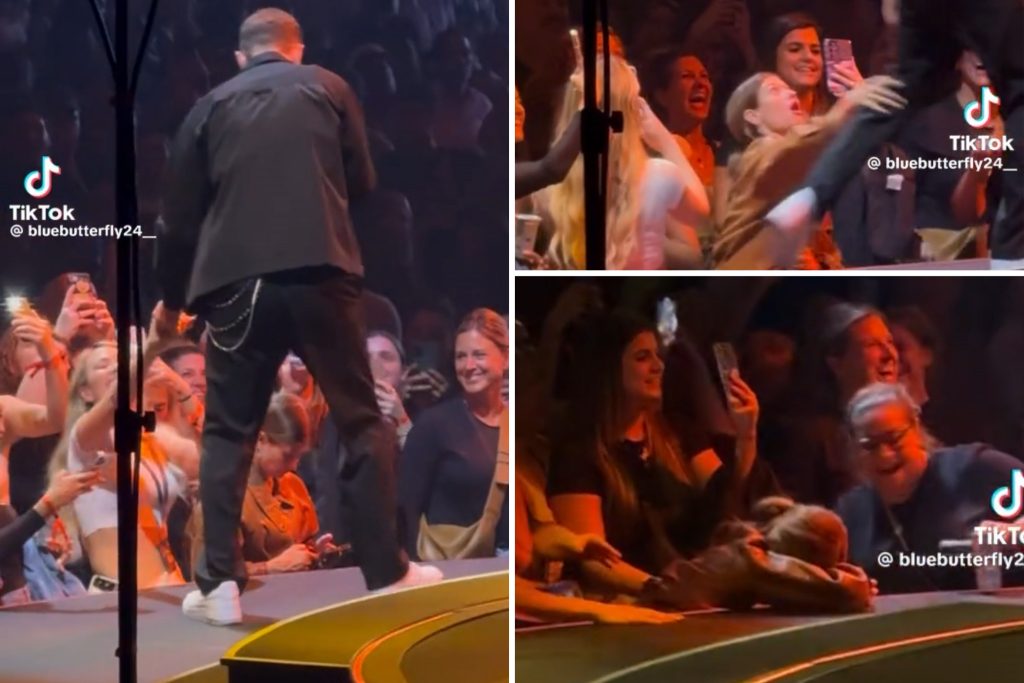 Izmisīgā mēģinājumā pievērst dziedātāja uzmanību, fane pastiepa roku un satvēra viņa kāju, taču tas vairs neko nemainīja un dziedātājs devās uz priekšu pie citiem faniem.
