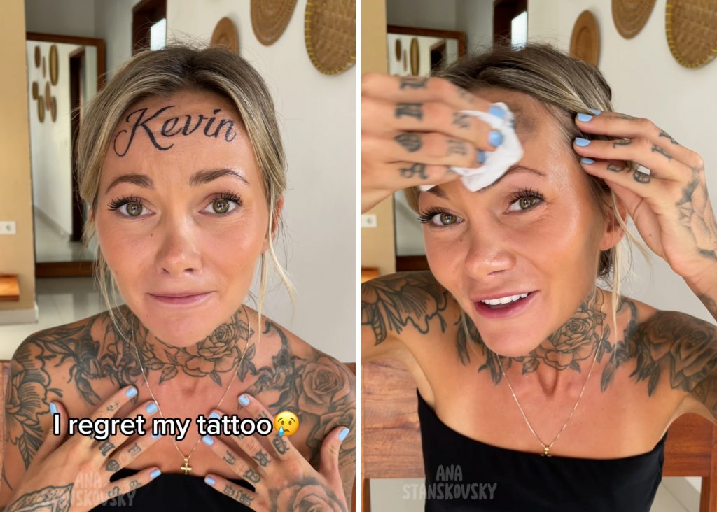 Aizvadītajā nedēļā Polijā dzimusī Ana Stanskovska, kura pašlaik dzīvo Bali, šokēja savus “TikTok” sekotājus, publicējot video, kurā atklāja, ka uz pieres uztetovējusi sava puiša vārdu “Kevins”.