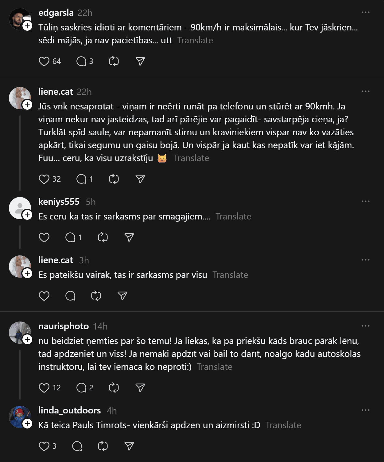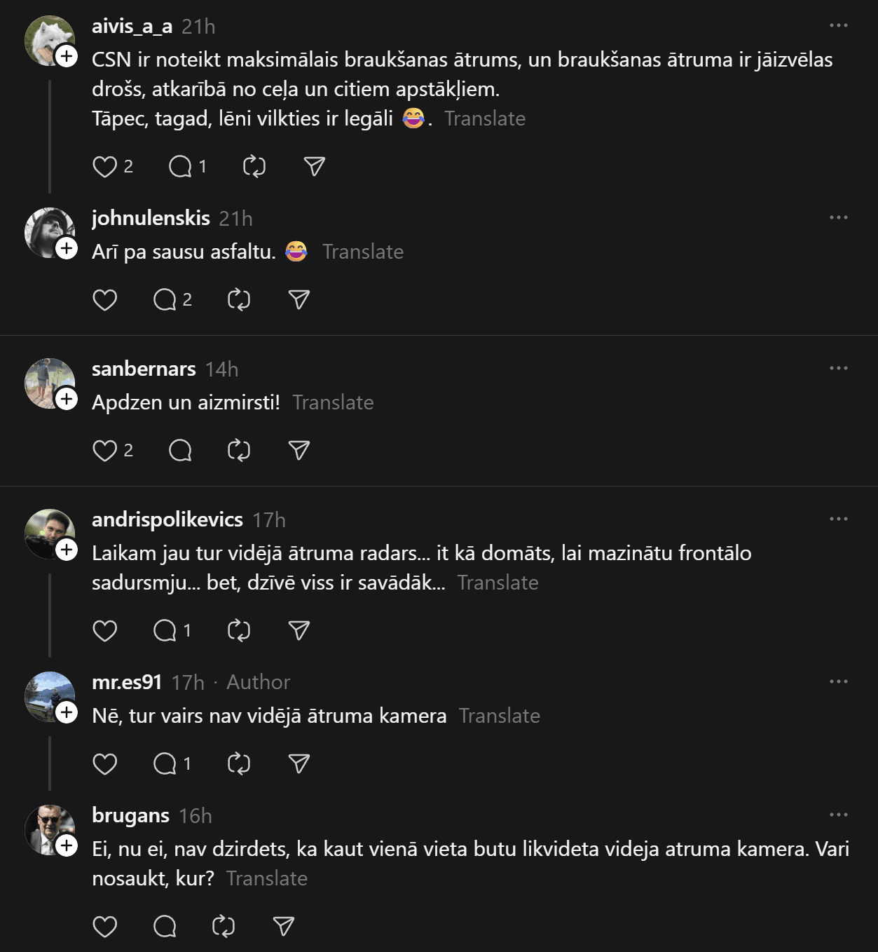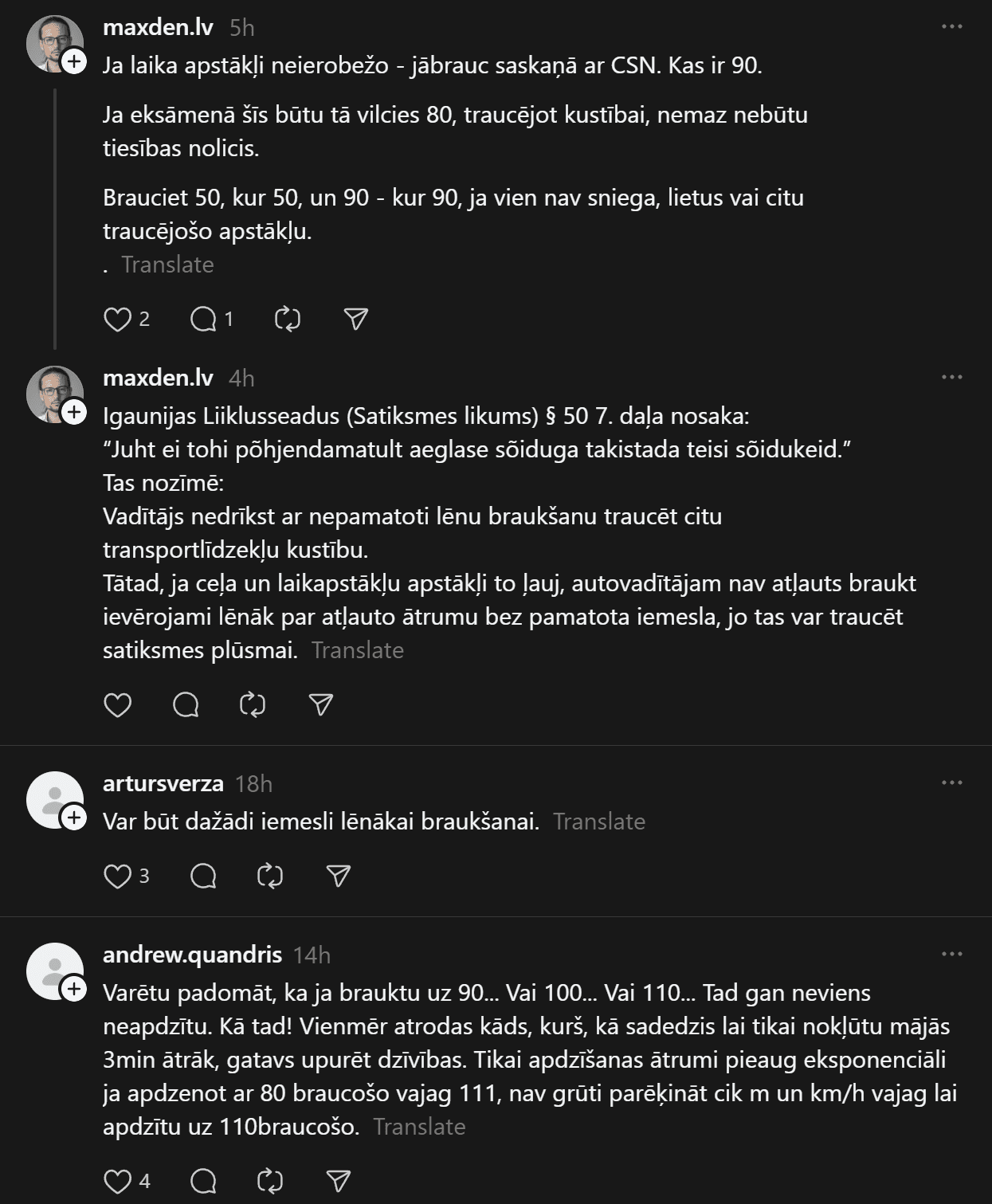 “Tu noteikti dari kaut ko nepareizi, ja smagais Tevi burtiski stumj uz priekšu. Apdzīšanas momentā distance vēl kaut cik, bija brīži kad smagais burtiski stūma vieglo. Tiešām ir jābrauc ~80kmh normālos apstākļos?” šoferis raksta.