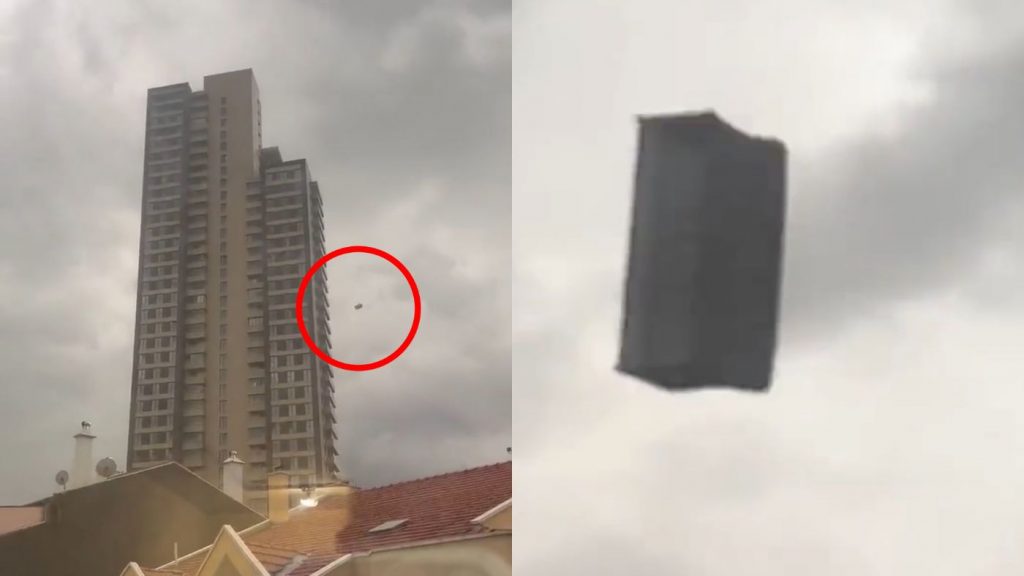 Sociālajos tīklos publicēts neparasts skats, kā vētras radītās vēja brāzmas debesīs virs Turcijas galvaspilsētas Ankaras paceļ un pa gaisu lidina dīvānu.