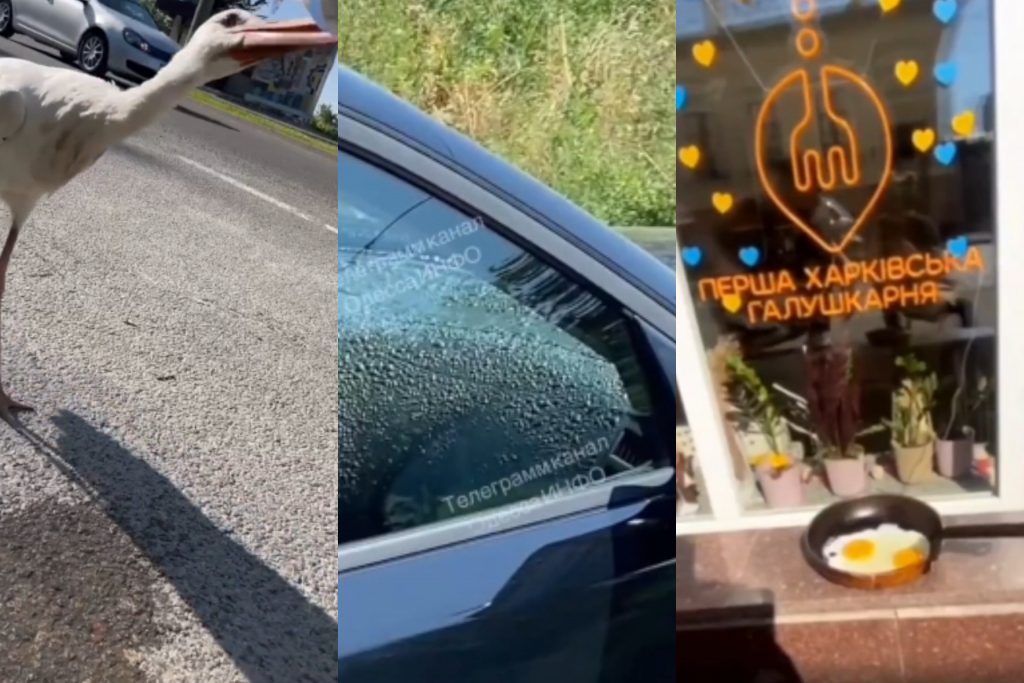 VIDEO. Ukraina piedzīvo pamatīgu karstumu: stārķis lūdz policistiem ūdeni, kūst mašīnas, uz ielas var pat izcept olas 35