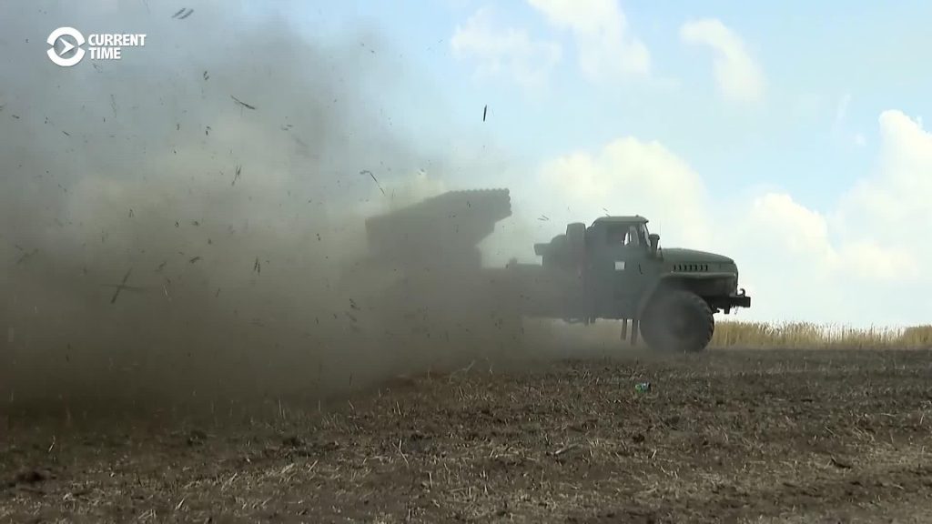 “Current Time” korespondents Boriss Sačalko pavadīja laiku kopā ar raķešu sistēmas “Grad” ukraiņu apkalpi frontes līnijā Ukrainas austrumos.
