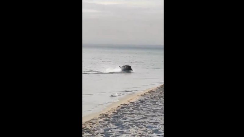 VIDEO. “Ukraiņu desants Krimā…” Atpūtniekus pludmalē pārsteidz no jūras ārā lecošā mežacūka! 24