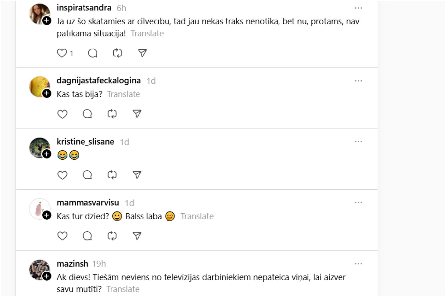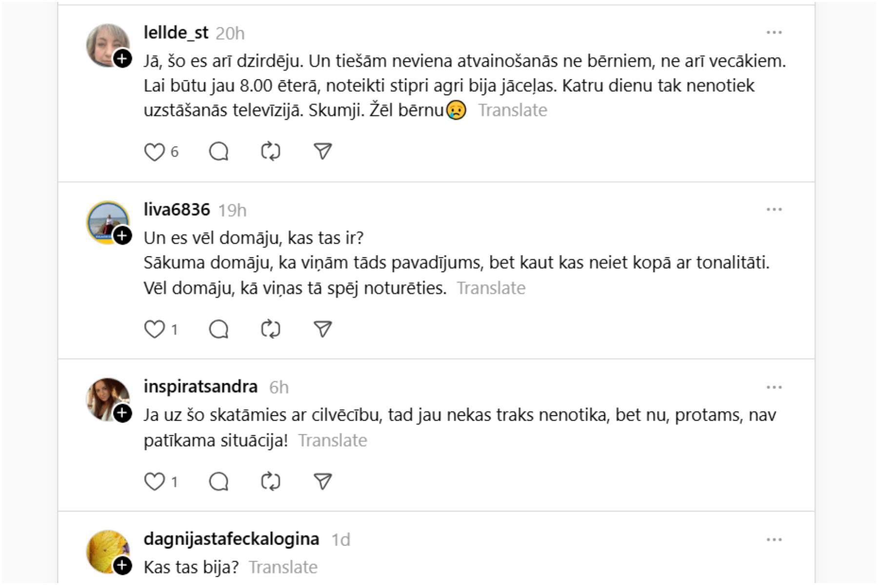 To pamanīja daudzi Latvijas iedzīvotāji, un sociālajā vietnē Threads par to tika izteikti virkne viedokļu, tostarp kāda sieviete atklāja, ka no sākuma pat nav sapratusi, ka tā ir kļūda pārraidē, domājot, ka tie ir trokšņi viņai apkārt.