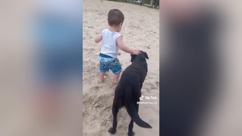 VIDEO. Uzticīgs suns stutē savu labāko draugu, kurš mācās staigāt 2