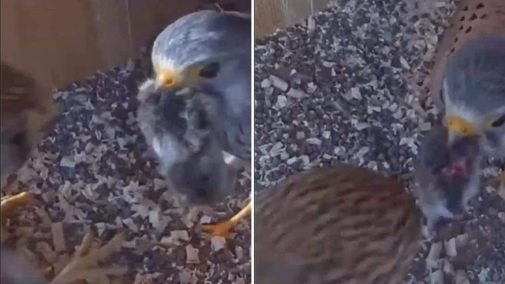 Šķiet, ka piekūnu gadījumā varētu būt spēkā teiciens “mīlestība nāk caur vēderu” – tēviņš regulāri ierodas ar medījumu un dalās ar to ar mātīti. Tieši šie barošanas brīži ir retās reizes, kad kamerai izdodas vienlaikus fiksēt abus putnus.