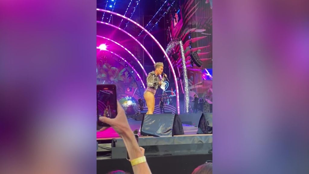VIDEO. “Vai tā ir tava mamma?” Popzvaigzne Pink apstulbst, kad koncertā fans uzmet uz skatuves maisiņu ar pelniem 8