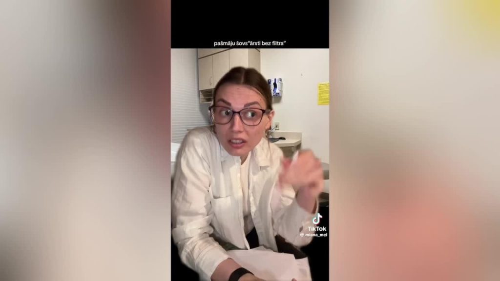 Lūk, vietnes “TikTok” lietotāja Diāna Melle veselīgi ar humoru parodē, kā notiek vizītes pie ārsta, iejūtoties ārstes lomā.