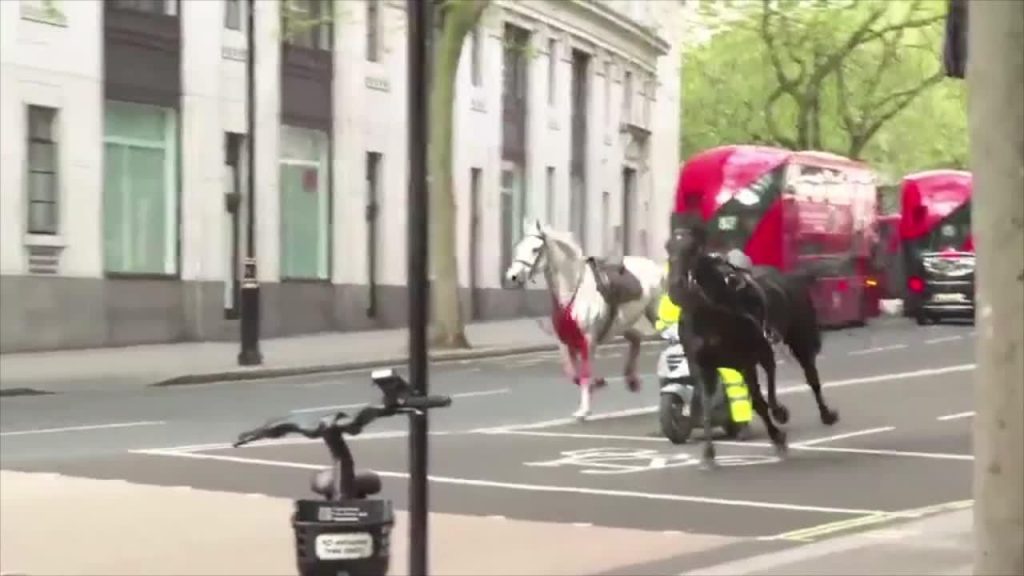 VIDEO. Vairāki izbēguši zirgi, viens no tiem asinīm klāts, radījuši haosu Londonā: četri cilvēki nogādāti slimnīcā 5
