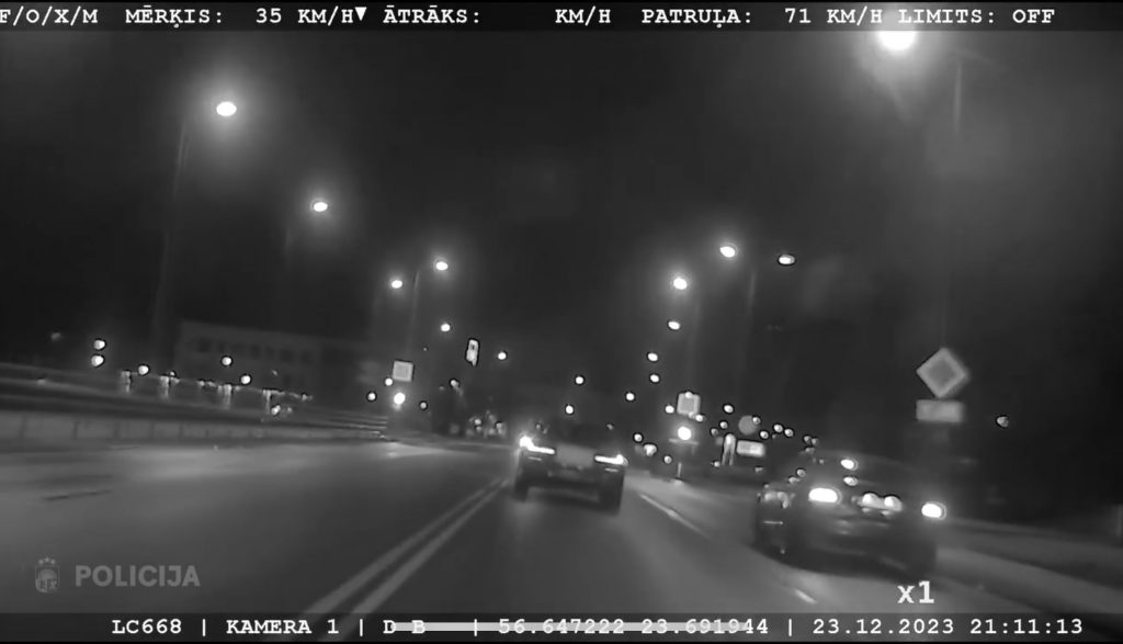 Neilgi pirms Ziemassvētkiem, 23. decembra vakarā, pulksten 21.10 Jelgavā, Atmodas ielā Valsts policijas Zemgales reģiona pārvaldes Dienvidzemgales iecirkņa Reaģēšanas nodaļas darbinieki pamanīja divus pretim braucošus transportlīdzekļus – “Audi” un “BMW”, kas apdzīvotas vietas teritorijā, kur atļautais braukšanas ātrums ir 50 km/h, tuvojās neierasti strauji. Policijas mašīnā esošā ātruma kontroles iekārta apliecināja, ka tuvošanās ne tikai liekas pārlieku strauja, bet arī ir ļoti pārgalvīga. Abiem transportlīdzekļiem tika fiksēts gandrīz 140 km/h liels braukšanas ātrums.