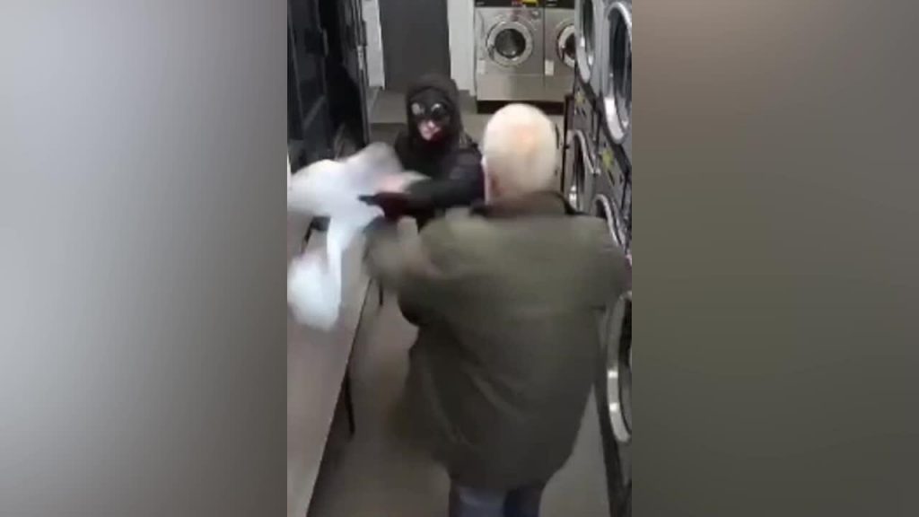 84 gadus vecais Rons Krokers 7. janvāra rītā žāvēja savas drēbes “Coin-Op” veļas mazgātavā Maltbijā, kad iekšā ielauzās maskā tērpts ļaundaris un pieprasīja naudu, ziņo “BBC”.