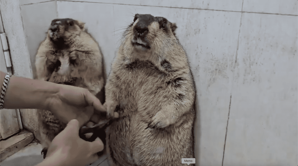 Katru reizi, kad nagu knaibles aizveras, otrs dzīvnieks reaģē ar pārsteigtu sejas izteiksmi, it kā pats izjustu notiekošā “sāpi”. Tikmēr “galvenais varonis” – tas, kuram tiek griezti nagi – šķiet jau samierinājies ar savu likteni…