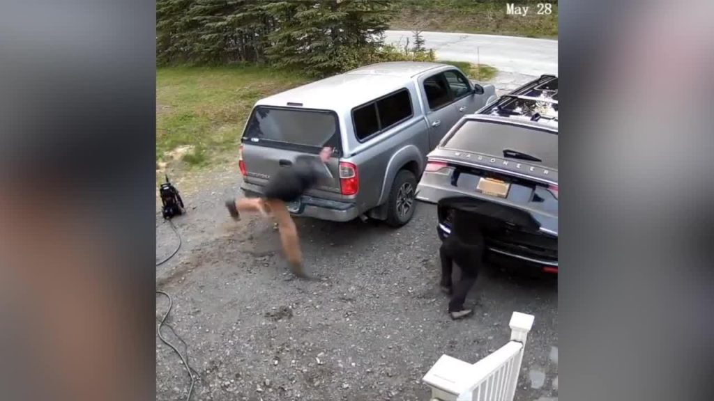 Kamēr vīrs darbojies ap savām lietām, tikmēr sieva automašīnas bagāžniekā centās salikt vairākas kastes, taču viņai tas neizdevās, jo pār viņas galvu lēnām sāka aizvērties auto bagāžnieka durvis.
