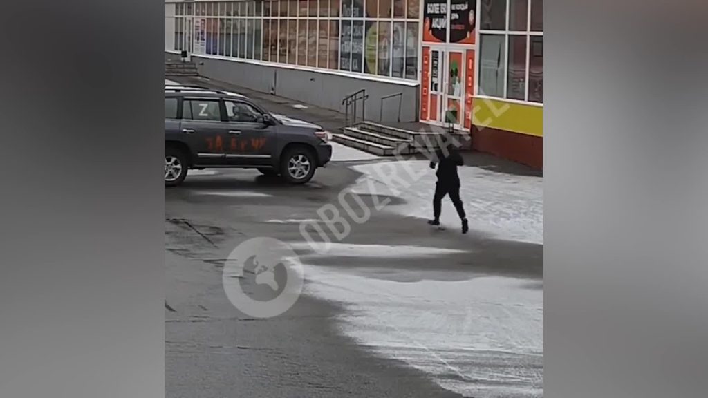 VIDEO. Vīrietis Doņeckā aizdedzina pie veikala novietotu automašīnu ar Z simboliku 32