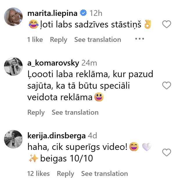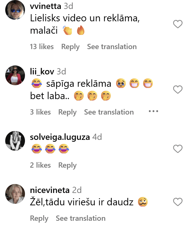 Vairāki cilvēki gan platformā “TikTok”, gan “Instagram” izteikuši komentārus par redzēto, atzīstot, ka reklāma patiešām sanākusi lieliska.