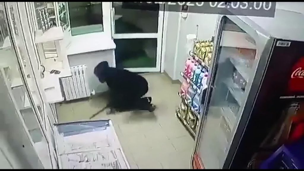 Kā redzams videonovērošanas kameras fiksētajā video, vīrietis paslīd jau pie pašas ieejas degvielas uzpildes stacijā. Tomēr viņš nezaudē drosmi, ātri pieceļas un turpina laupīšanas mēģinājumu.