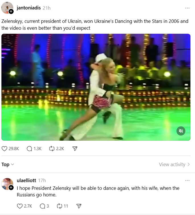 Šādas ziņas par miera plānu, karavīriem, Ukrainas tautas likteni mēs lasām ik dienas. Zelenskis ir kļuvis par brīvības simbolu, par cīnītāju, par varoni, bet nejauši uziets video internetā no priecīga notikuma, patiesībā liek ar jaunām acīm paskatīties uz to, kas šobrīd notiek pasaulē. Zelenskis cīnās par mieru savā valstī, bet reiz 2006. gadā Zelenskis jau uzvarēja…šovā “Dejo ar Zvaigzni”. Laikā, kad mūsu visu dzīve bija vieglāka, kad ik dienas mēs medijos nelasījām par karu un Ukraiņi nedzīvoja nāves bailēs.