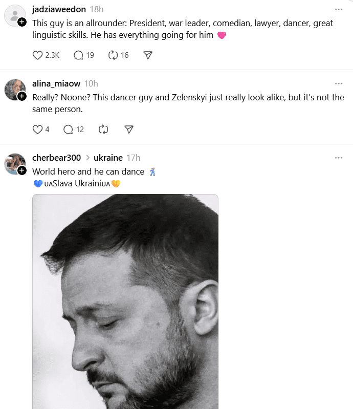 Volodimirs Zelenskis, pirms kļuva par Ukrainas prezidentu, bija labi zināms kā aktieris, komiķis un producents. Viena no spilgtākajām epizodēm viņa priekšpolitiskajā karjerā bija dalība Ukrainas šovā “Dejo ar zvaigzni” (ukrainiski: Танці з зірками), kas ir Ukrainas versija no starptautiski pazīstamā formāta “Dancing with the Stars”. Viņa dejošanas partnere bija Olena Šoptenko (Олена Шоптенко), kura ir profesionāla dejotāja, vairākkārtēja čempione sporta dejās.
