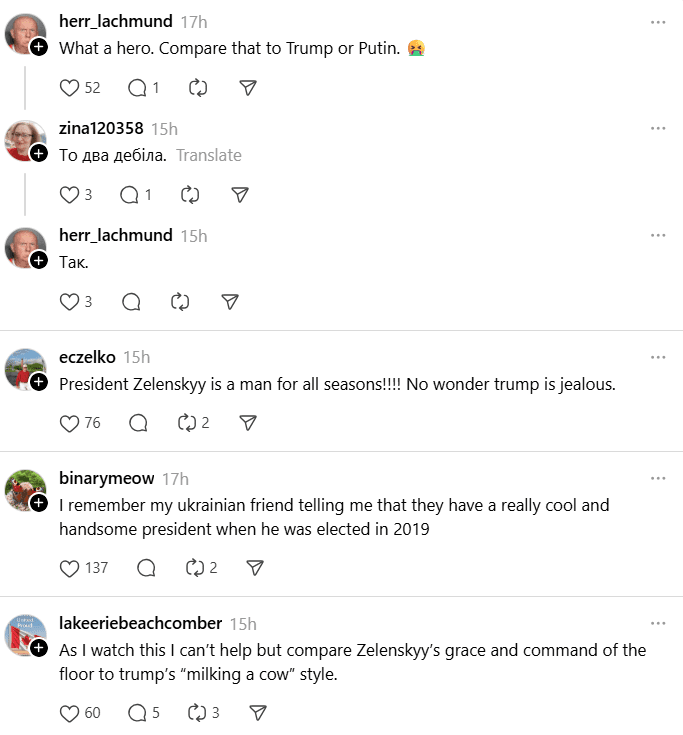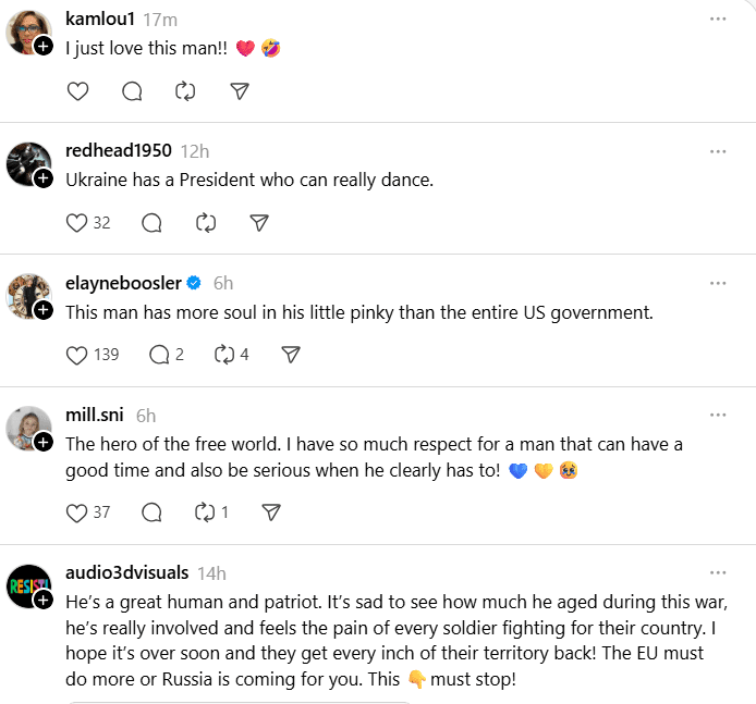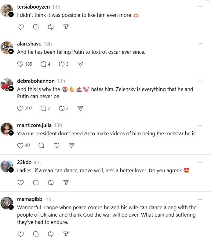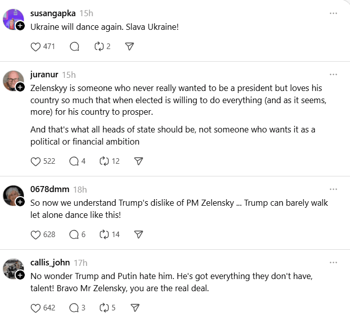Komentāros ļaudis raksts: “Ceru, ka viņš atkal varēs dejot ar sievu, kad krievi aizies mājās.”