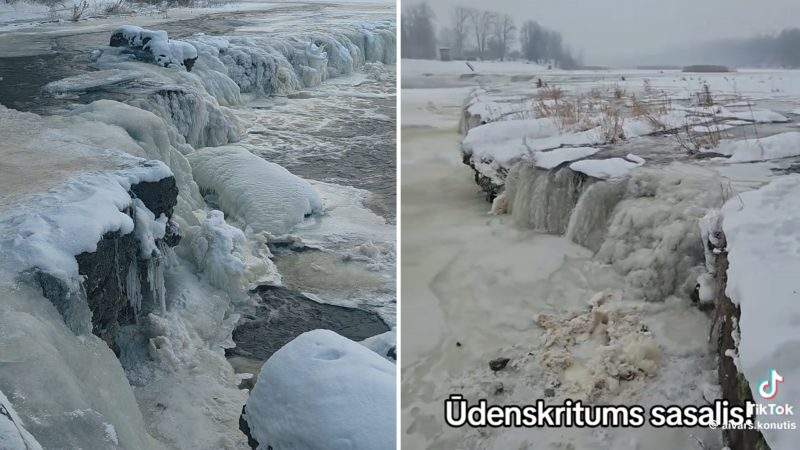 Igaunijā pār cilvēkiem sabruka sasalušais Valastes ūdenskritums