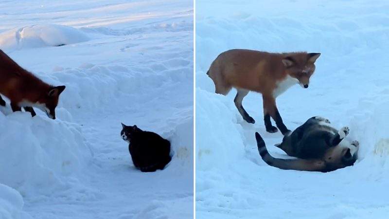 Trīs “rižiki” satikās un brīnījās: kaķi pa logu vēro lapsu