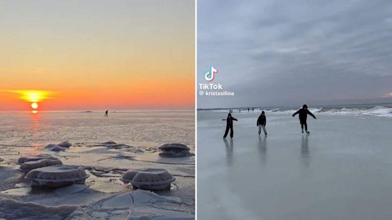 Iedzīvotāji priecājas par sasalušo Ventas rumbu