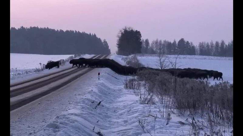 Eiropas bizonu bars šķērso dzelzceļa sliedes Polijas austrumos