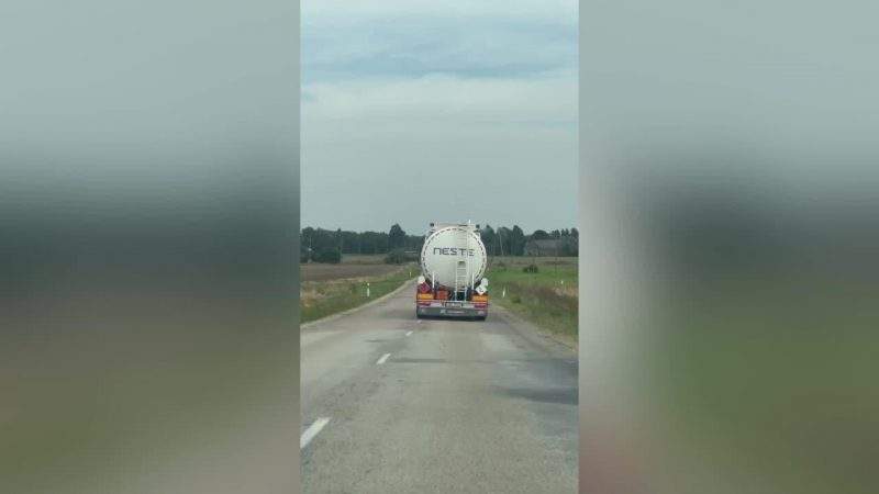 Kravas automašīnas vadītājs veic bīstamu apdzīšanas manevru