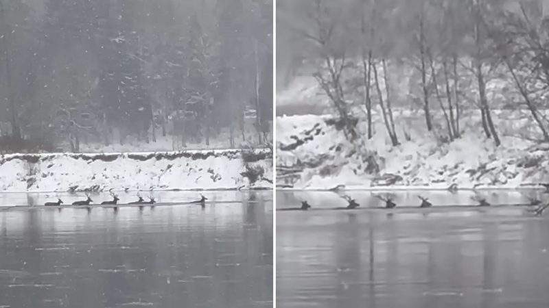 Videonovērošanas kamera fiksē brīdi, kad auto iebrauc Daugavā