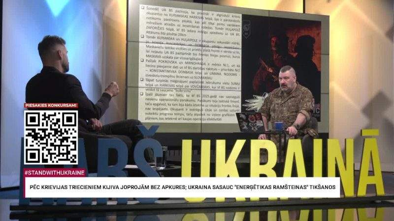 TV24 raidījums "Aktuālais par karadarbību Ukrainā" piedāvā aktuālu informāciju un analīzi par notikumiem Krievijas-Ukrainas karā. NBS majors, Zemessardzes štāba virsnieks Jānis Slaidiņš sniedz pārskatu par karadarbības attīstību, atbild uz skatītāju jautājumiem un apspriež ar to saistītās starptautiskās norises. Raidījums ir informatīvs un koncentrēts uz dziļāku izpratni par karu un tā ietekmi uz dzīvi Latvijā un pasaulē.