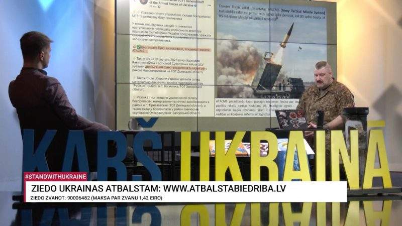 TV24 raidījums "Aktuālais par karadarbību Ukrainā" piedāvā aktuālu informāciju un analīzi par notikumiem Krievijas-Ukrainas karā. NBS majors, Zemessardzes štāba virsnieks Jānis Slaidiņš sniedz pārskatu par karadarbības attīstību, atbild uz skatītāju jautājumiem un apspriež ar to saistītās starptautiskās norises. Raidījums ir informatīvs un koncentrēts uz dziļāku izpratni par karu un tā ietekmi uz dzīvi Latvijā un pasaulē.