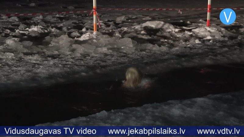 Jēkabpilieši bauda pusnakts peldi āliņģī