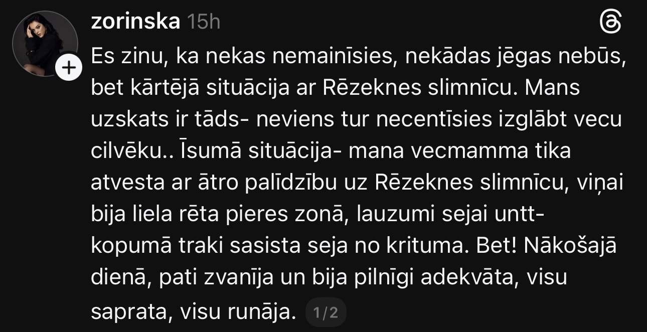 Zane raksta: “Es zinu, ka nekas nemainīsies, nekādas jēgas nebūs, bet kārtējā situācija ar Rēzeknes slimnīcu.