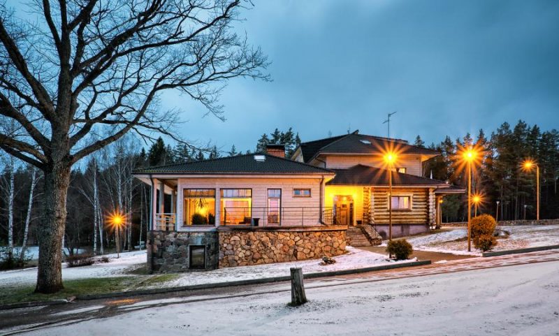 Telpu interjerā dominē koks, pa logiem paveras skats uz neskarto dabu – ezeru, mežu, sniega klātajām pļavām un meža zvēru iemītajām pēdiņām prāvajā sniega kārtā.
