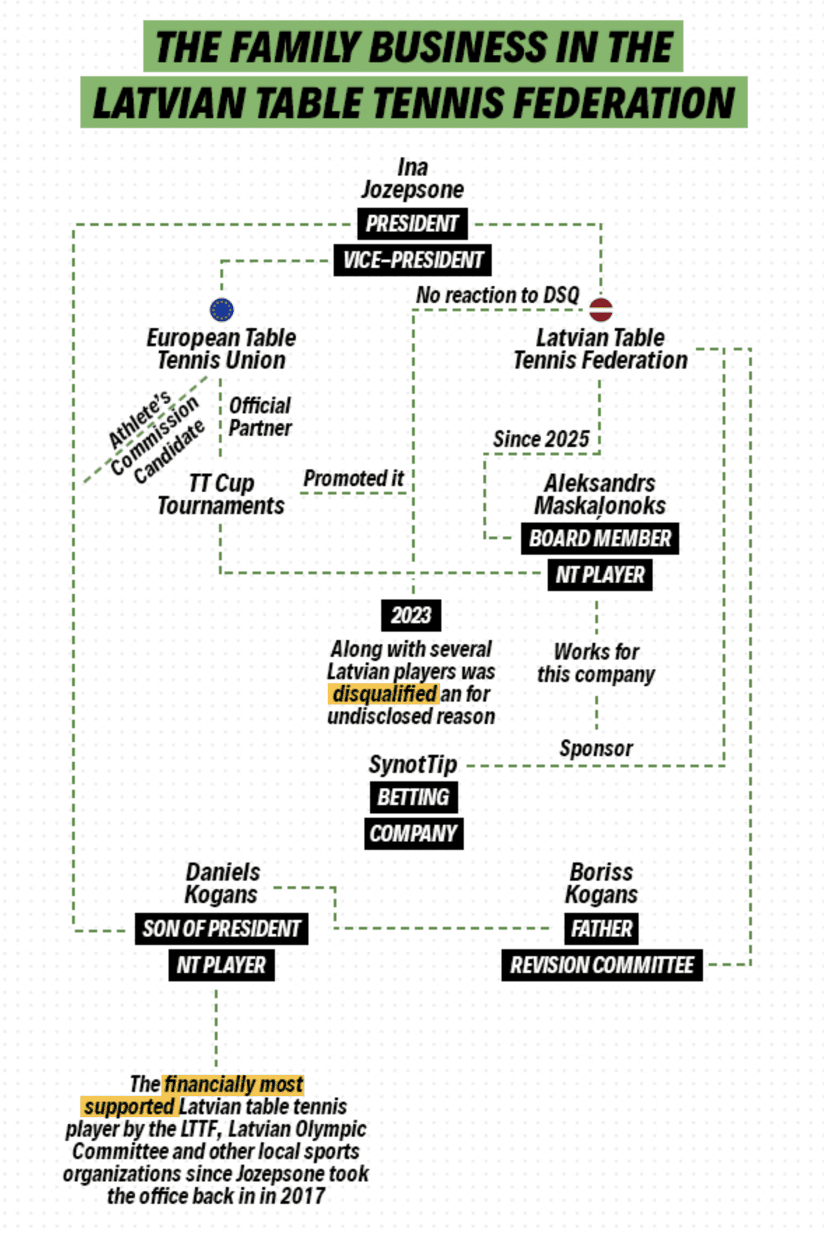 Lasītājs mums atsūtīja publikāciju, kurā Latvijas Galda tenisa federācija aprakstīta kā ģimenes bizness. Ārzemju raksts publicēts 25.08.2025. Zemāk lasāms raksta tulkojums.