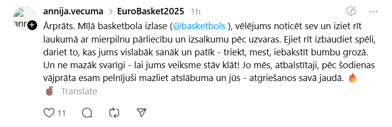 Paldies #basketbols izlases komandai!— inga (@lidzigsezim) August 29, 2025