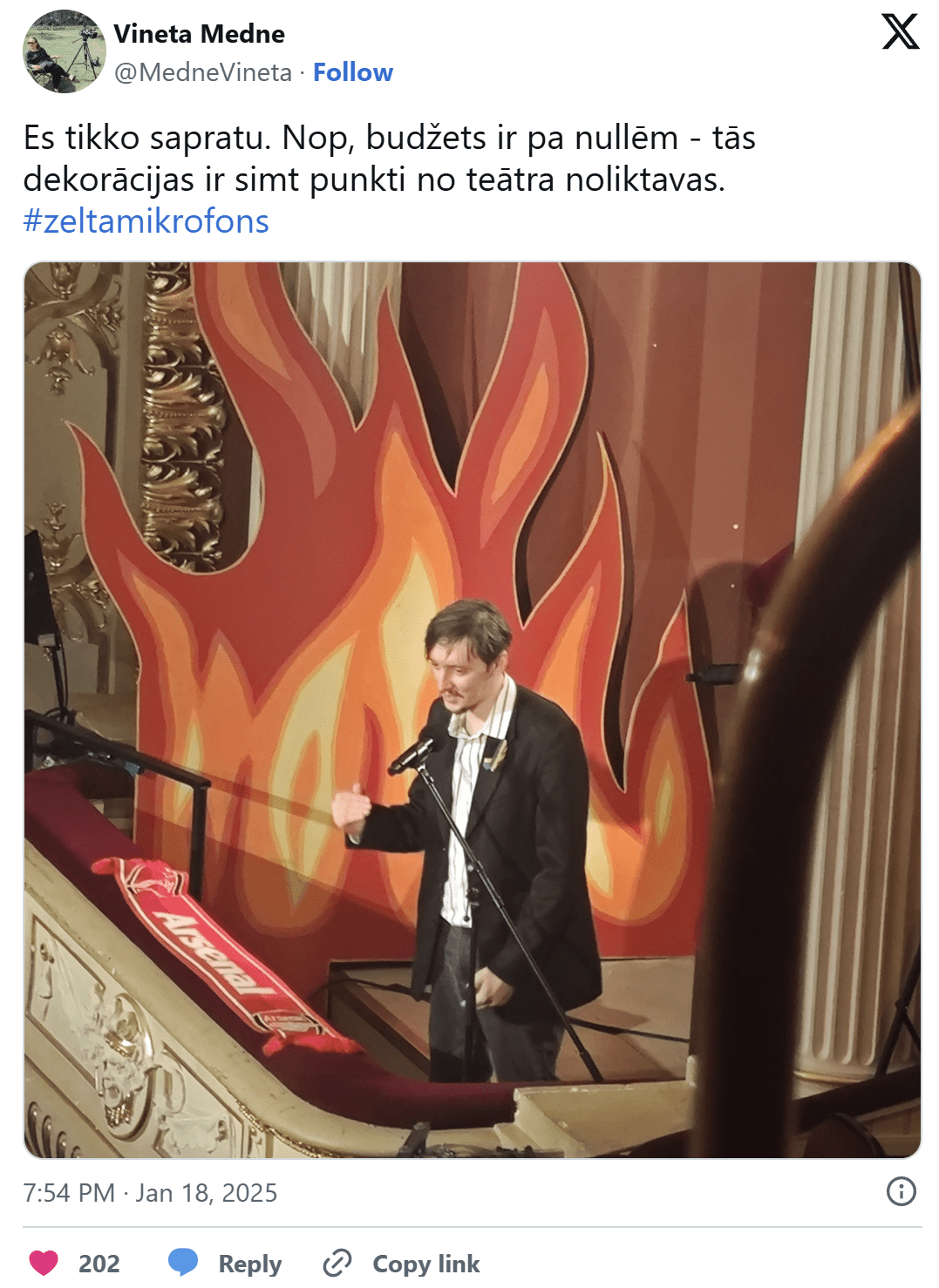 18. janvārī, Latvijas Nacionālajā teātrī norisinās mūzikas ierakstu gada balvas “Zelta mikrofons 2025” pasniegšanas ceremonija.