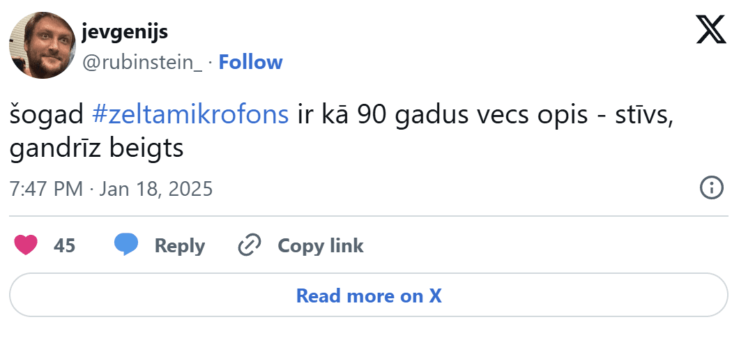 Sociālajos tīklos cilvēki dalījušies ar savām emocijām, vērojot “Zelta mikrofona” pasniegšanas ceremoniju, norādot, ka šogad tas izskatās kā 1999. gadā veidots pasākums. Tāpat arī soctīklotāji steigušies apspriest izvietotās dekorācijas, kur kā viens no galvenajiem elementiem ir uguns liesmas.