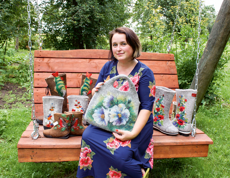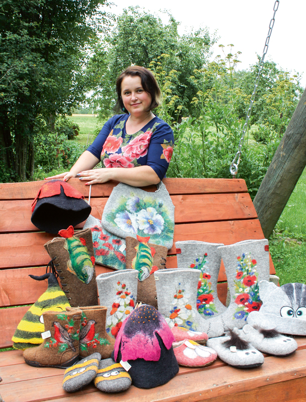 INGA LOGINA no Beverīnas novada Brenguļu pagasta “Rozītēm” materializē piezemētus sapņus vai, precīzāk sakot, no vilnas kārsuma veltnē zābakus, tos rotājot ar pasakainām ainavām, puķu pļavām, ziedu dārziem vai ko citu, ko savā iztēlē uzbūris apavu pasūtītājs.