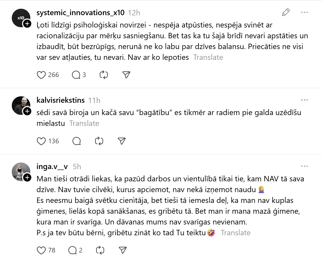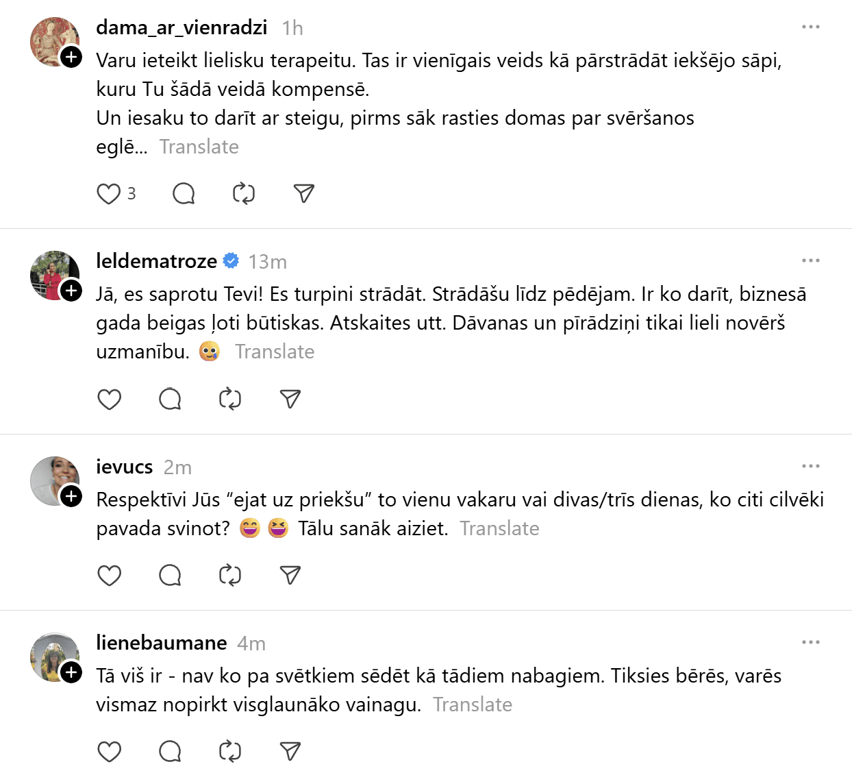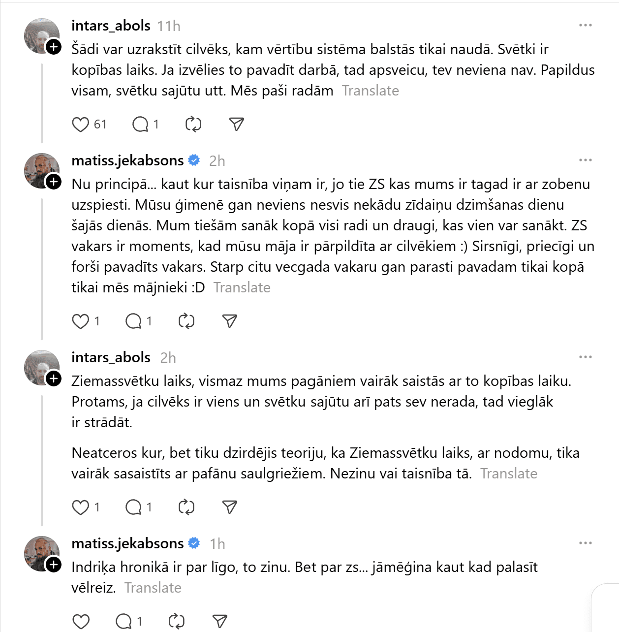 Sociālajā tīklā “Threads” kāds vīrietis publicējis visai provokatīvu ierakstu, kas piesaistījis lielu sabiedrības uzmanību un izraisījis asas diskusijas. Vīrietis raksta: “99% cilvēku šo nesapratīs, bet Ziemassvētki ir domāti tiem, kuriem nav savas dzīves. Normāliem, veiksmīgiem cilvēkiem tās ir parastas darba dienas. Kamēr jūs dzerat un pārēdaties, es eju uz priekšu. Svētku svinēšana ir nabadzīga prāta pazīme un mēģinājums aizpildīt tukšumu ar dāvanām, kuras nevarat atļauties.”
